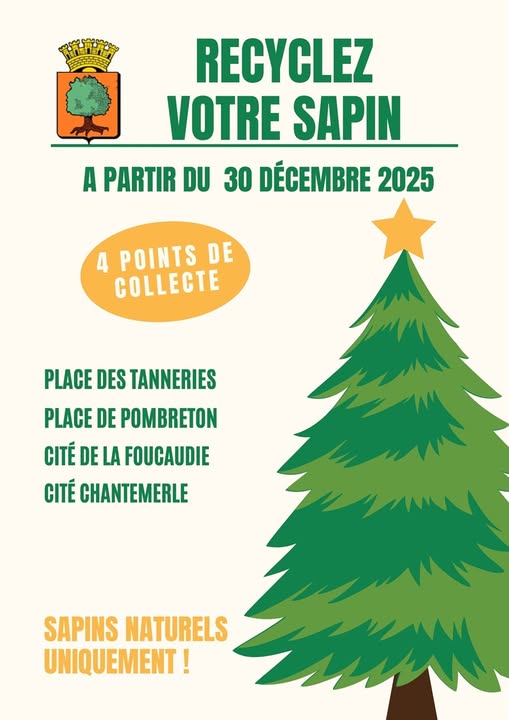 à partir du 30 décembre 2025, la commune de Nersac organise la collecte des sapins naturels.