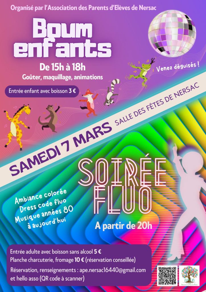 Animations APEN – samedi 7 mars L’APEN organise deux événements, samedi 7 mars : de 15h00 à 18h00 : Boum pour les enfants. à partir de 20h00 : Soirée fluo. Retrouvez toutes les infos ci-dessous PartagezTweetez0 Partages