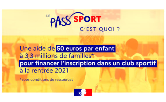 Grâce au Pass’Sport vous pouvez bénéficier de 50€ par enfant pour financer son inscription dans un club sportif. Les objectifs ? Promouvoir la pratique sportive et soutenir les clubs. Plus d’infos https://www.education.gouv.fr/le-pass-sport-323333