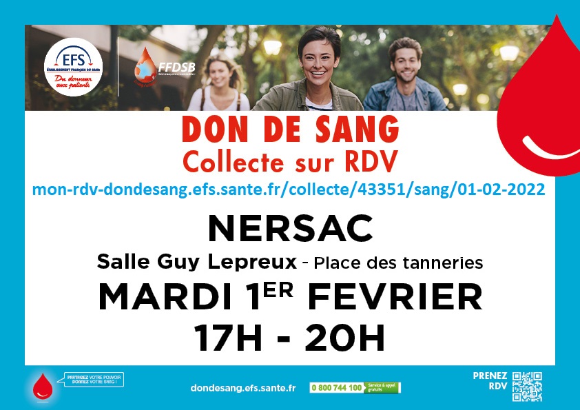 Collecte sur RDV : https://mon-rdv-dondesang.efs.sante.fr/…/sang/01-02-2022