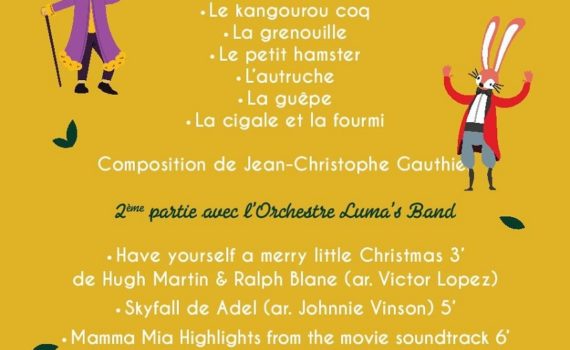 Les chorales de l’École départementale de musique et l’ensemble Luma’s Band présentent la pièce musicale « La Cantate des animaux non domestiques ». Concert gratuit et ouvert à tous ! PartagezTweetez0 Partages