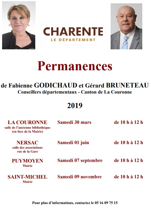 Accueil » Évènement » Évènements » Divers » Permanences des conseillers départementaux à Nersac
