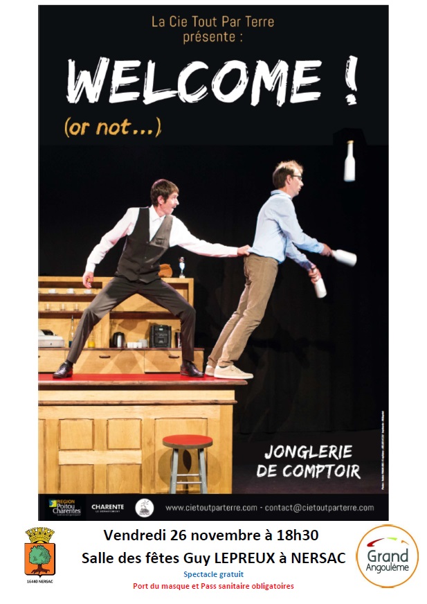 La Cie Tout Par Terre vous propose Welcome !, spectacle de jonglerie de comptoir, le vendredi 26 novembre, à 18h30, à la salle Guy LEPREUX.