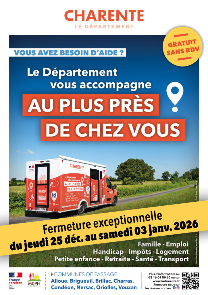 Le bus du Département sera fermé du 25 décembre 2025 au 3 janvier 2026 inclus pour une pause hivernale et sera de retour dès le 5 janvier 2026 pour ses permanences.