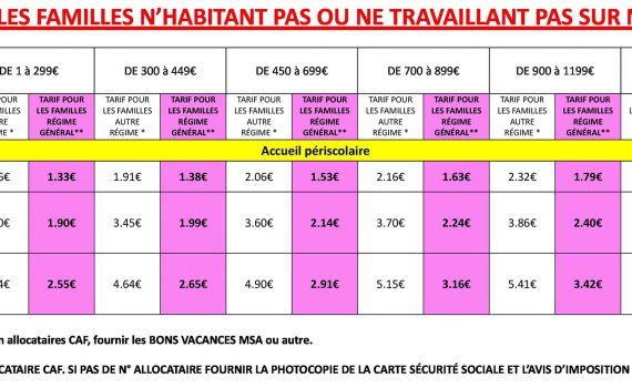 Retrouvez ici tous les tarifs de la commune de Nersac pour l’année 2024.