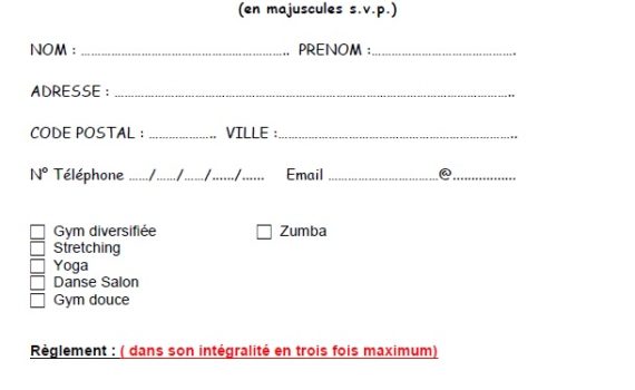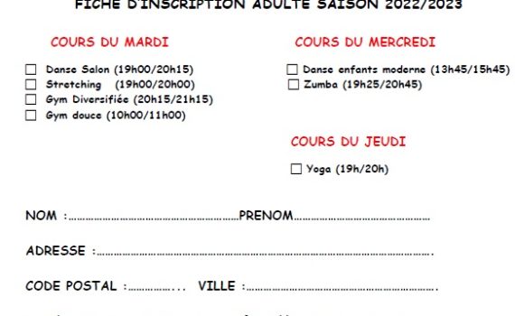 Nersac gym Fiche d’inscription adultes saison 2022 2023