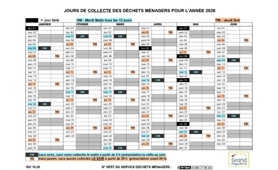 Calendrier surligné collecte OM + tri 2026 sem.1
