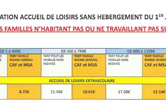 Tarifs ALSH 2022 extrascolaire