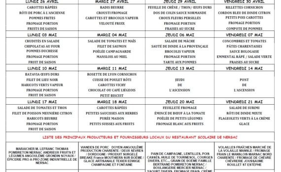 Menus 26 avril – 21 mai 2021