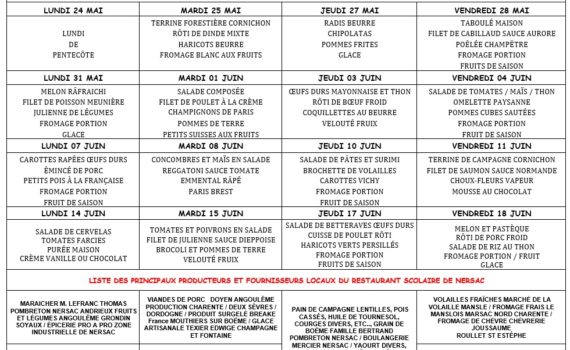Menus 24 mai – 18 juin 2021