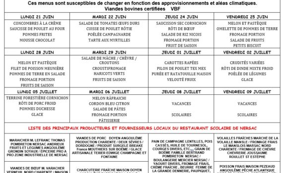 Menus 21 juin au 06 juillet
