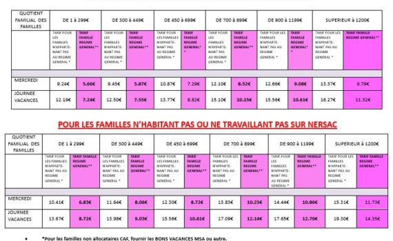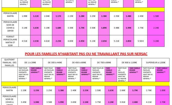Retrouvez ici tous les tarifs de la commune de Nersac pour l’année 2024.