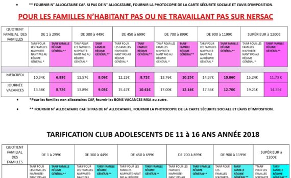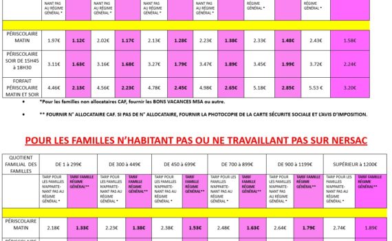 Retrouvez ici tous les tarifs de la commune de Nersac pour l’année 2024.