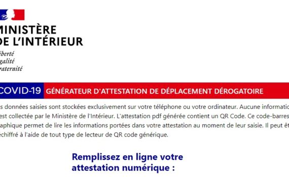 Un dispositif de création numérique de l’attestation de déplacement dérogatoire est désormais disponible, en complément du dispositif papier toujours valide. L’attestation numérique doit être complétée en cliquant sur le lien suivant : https://media.interieur.gouv.fr/deplacement-covid-19/ Un fichier PDF comprenant l’ensemble des informations et à l’image de la version papier est alors généré. Ce […]