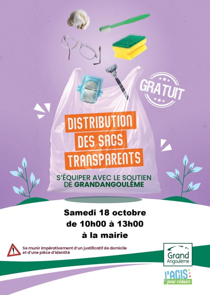 Vous n’avez pas pu retirer vos sacs transparents lors de la distribution organisée par GrandAngoulême, 29 et 30 septembre et 1er octobre ? Pas de souci