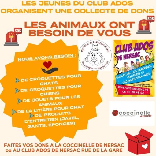 En partenariat avec la supĂ©rette Coccinelle de Nersac, les jeunes du Club ados organisent une collecte pour le Refuge de l’Angoumois, Ă […]